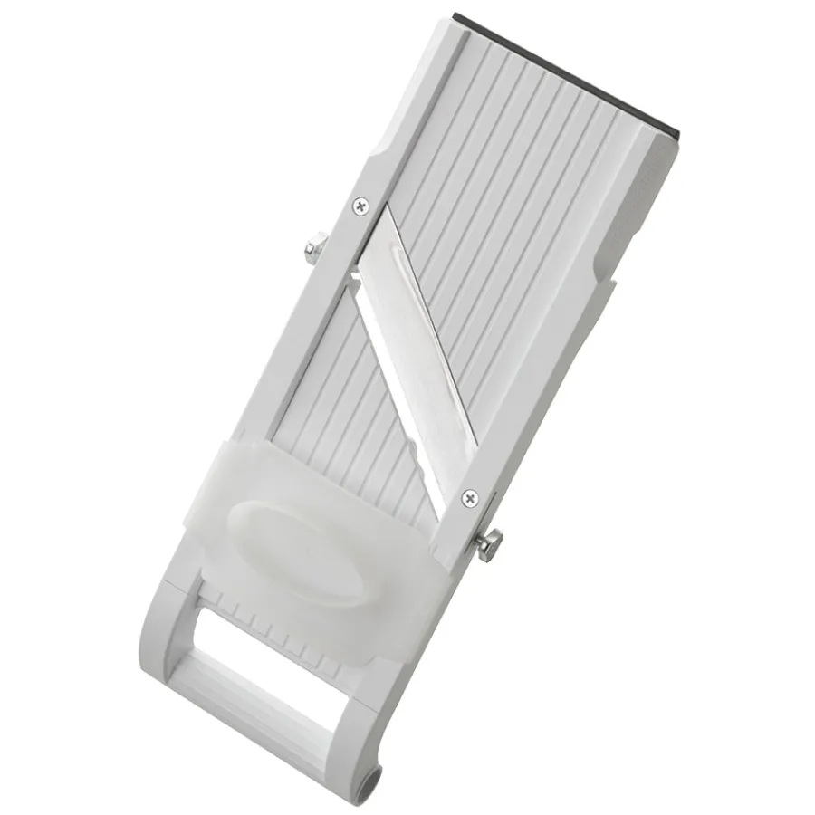 Denne førsteklasses mandolinen er perfekt for å skjære grønnsaker og rotfrukter i presise skiver og strimler. Med et håndslipt, trinnløst blad kan du justere tykkelsen fra 0,5 til 10 mm for optimale resultater. Den leveres med tre utskiftbare blader for strimling og julienne, samt fingerbeskyttelse for trygg bruk. Anti-skli på undersiden sørger for stabilitet, og de kompakte målene gjør den enkel å håndtere.