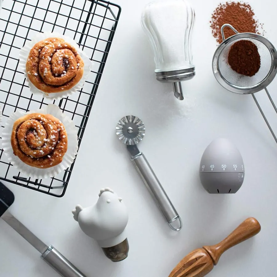Timer i grå fra Christiania 1739 og serien Kitchenline. Timeren er fremstilt i et klassisk egg-design og kommer i en liten, praktisk størrelse som tar lite plass ved siden av komfyren. Kan stilles inn nedtelling på opptil 1 time. Fremstilt i plast.