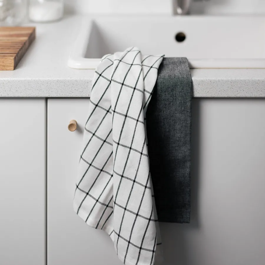 CHRISTIANIA 1739 Kjøkkenhåndkle Grå/Rutete 50X70cm 2pk