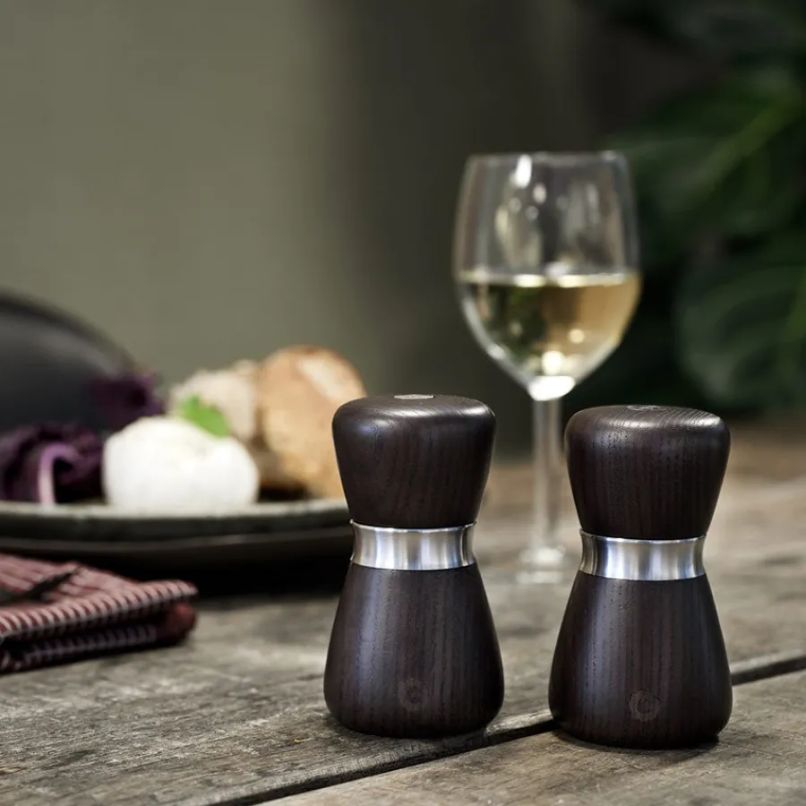 Kyoto krydderkvern til salt eller pepper fra Crushgrind. Denne flotte kvernen er utstyrt med den patenterte mekanismen fra Crushgrind, og designet i materialene tre og rustfritt stål som sammen skaper et stilrikt uttrykk. Toppen av lokket er utformet med en liten knapp med bokstavene S og P på hver sin side, som enkelt kan vendes om etter hvilken type krydder kvernen inneholder. Kvernen måler 10 cm.