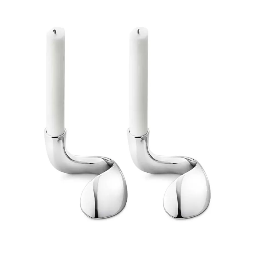 Lysestake 2stk i blankt rustfritt stål fra George Jensen i serien Bloom. Serien Bloom er designet av Helle Damkjær og inspirert av den skandinaviske naturen. De vakre buede formene på lysestakene gir det elegante og unike preget til hjemmet ditt.