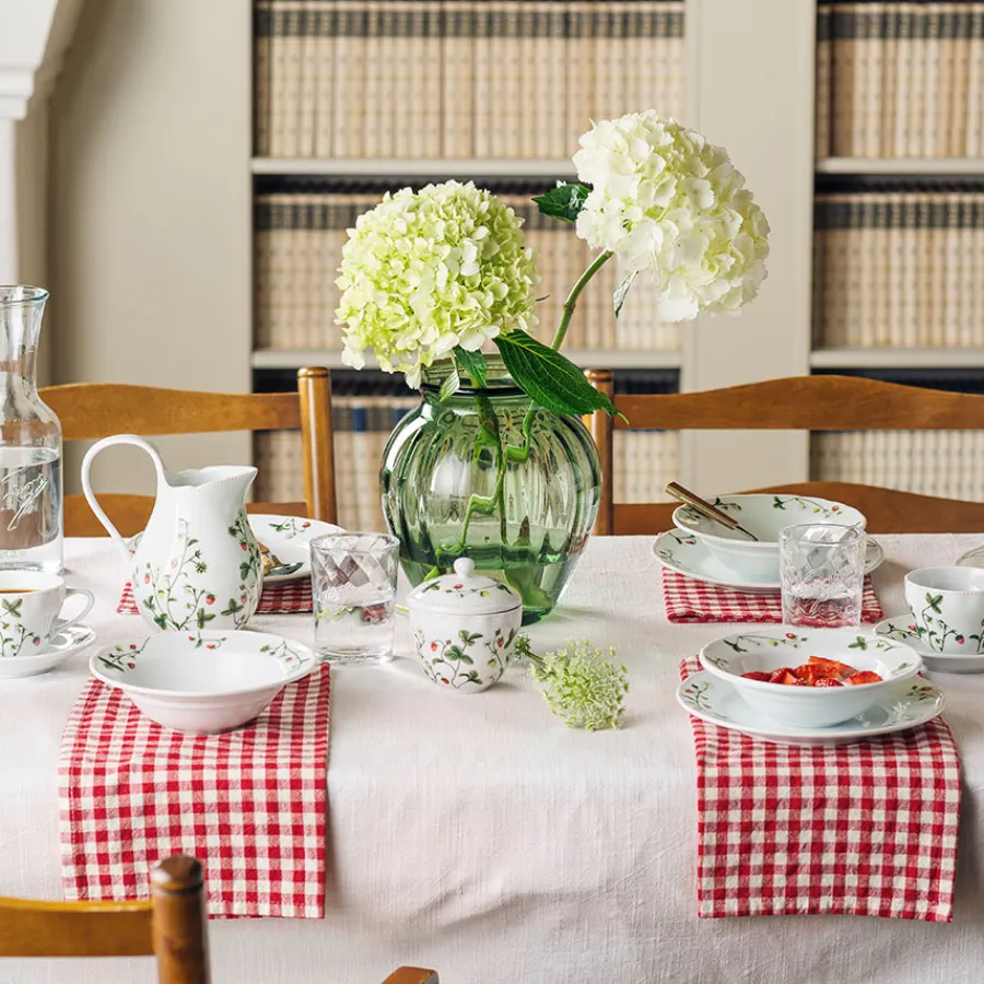Emily Vase i en størrelse på 23 cm i grønt optisk glass kombinerer klassisk design med en moderne vri. Den dype grønne fargen gir et varmt og sofistikert preg, og passer perfekt til både lyse og mørke interiørstiler. Det vakre optikkmønsteret i glasset gir liv og dybde til vasen, og skaper et lekkert lysspill som fremhever detaljene.Vasen er munnblåst og håndlaget, noe som gjør hvert eksemplar unikt. Med en høyde på 23 cm er den ideell for mindre og mellomstore buketter – eller som dekorasjon alene på et bord, en hylle eller i vinduet.