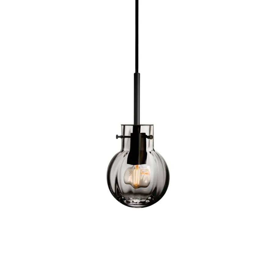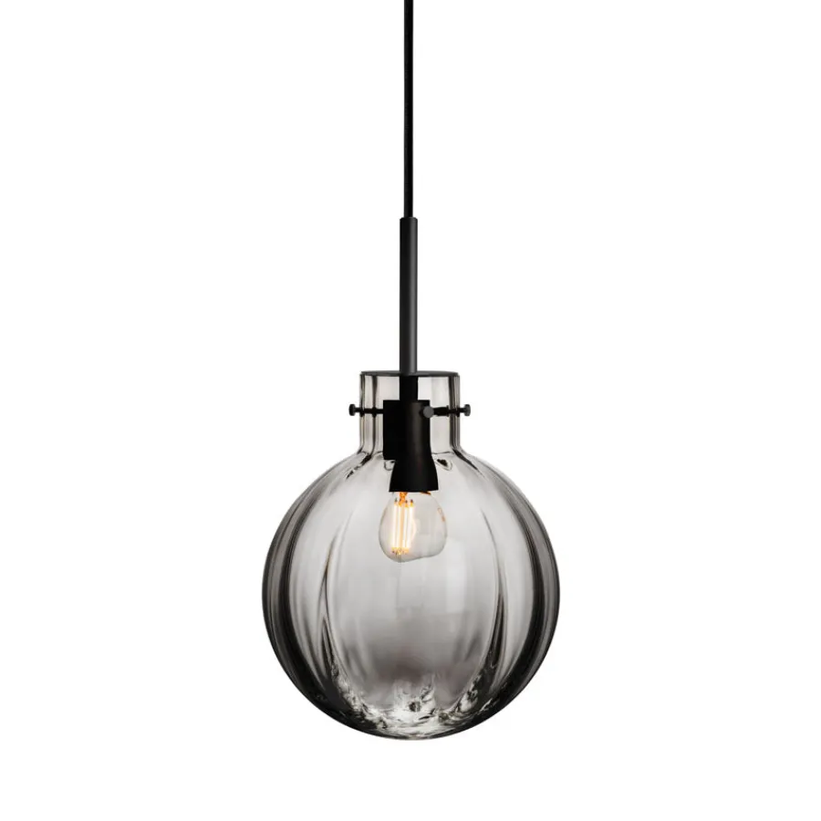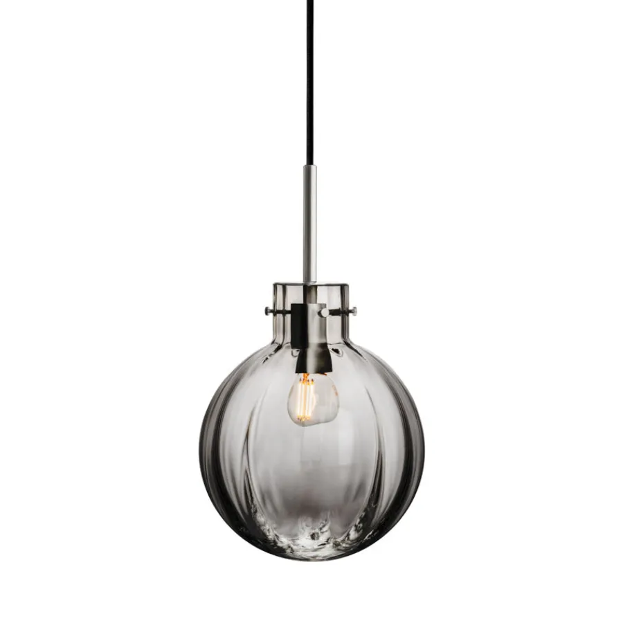 Taklampen med optikk i glasskulen er en stemningsfull lampe som kombinerer håndverkstradisjoner med moderne eleganse. Det karakteristiske optikkmønsteret skapes når den glødende glassmassen presses ned i en ring med stående lameller, som danner dype spor i glasset. Deretter blåses kulen ned i en granittform, noe som gir den en glatt ytterflate og en levende, bølget innerkjerne. Når lampen tennes, skaper dette et unikt spill av lys og skygge som gir rommet en lun og eksklusiv atmosfære.Alle krystallkulene munnblåses og håndslipes på Hadeland Glassverk av våre erfarne glassblåsere og slipere. Mer enn syv ulike håndverkere legger sitt preg på hver lampe, noe som gjør hvert eksemplar unikt. Den røkgrå fargetonen gir en sofistikert og tidløs karakter, som passer like godt alene som i grupper over spisebord, kjøkkenøy eller i stue. Designet er signert Maud Gj. Bugge, og bygger på Hadeland Glassverks stolte håndverkstradisjoner.Lampen leveres med sort tekstiltrukket kabel (3 meter), singel baldakin og er dimbar for fleksibel lyssetting. Montering må utføres av elektriker, og monteringsanvisning følger med.Spesifikasjoner: Sokkel: E14 Pæreanbefaling: Klar, dimbar filamentpære 3–4 W, 220 V Lyskilde medfølger ikke Montering av elektriker påkrevd, monteringsanvisning følger med