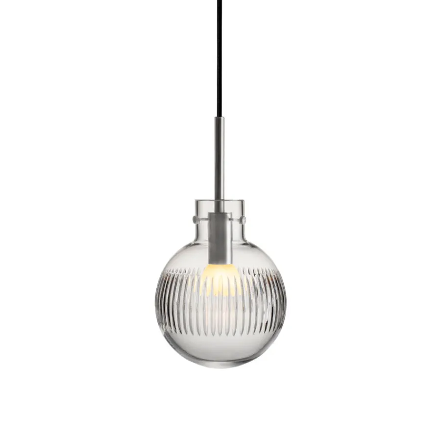 Pendellampen Krystallkule Skjær fra Hadeland Glassverk er et ekte kunstverk i lys. Basen er en helt glatt, munnblåst krystallkule, som videre foredles med et elegant, vertikalt skjær-mønster – håndslipt med stor presisjon over hele overflaten. Resultatet er en lampe som ikke bare lyser opp rommet, men også tilfører det en følelse av tidløs eleganse.