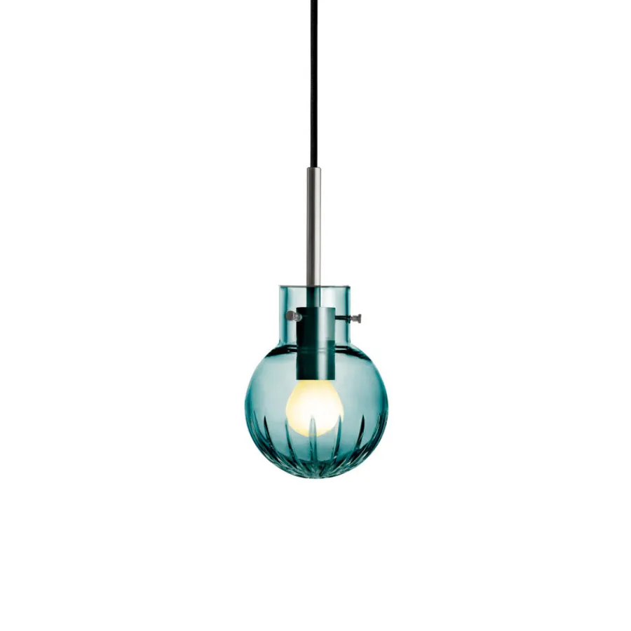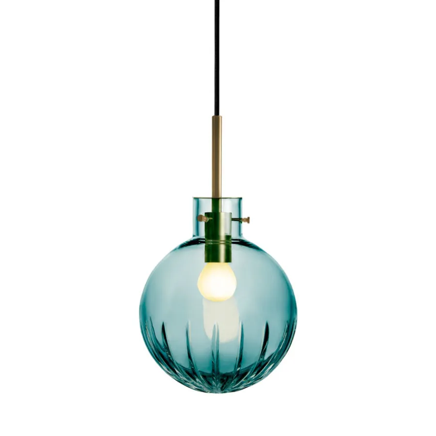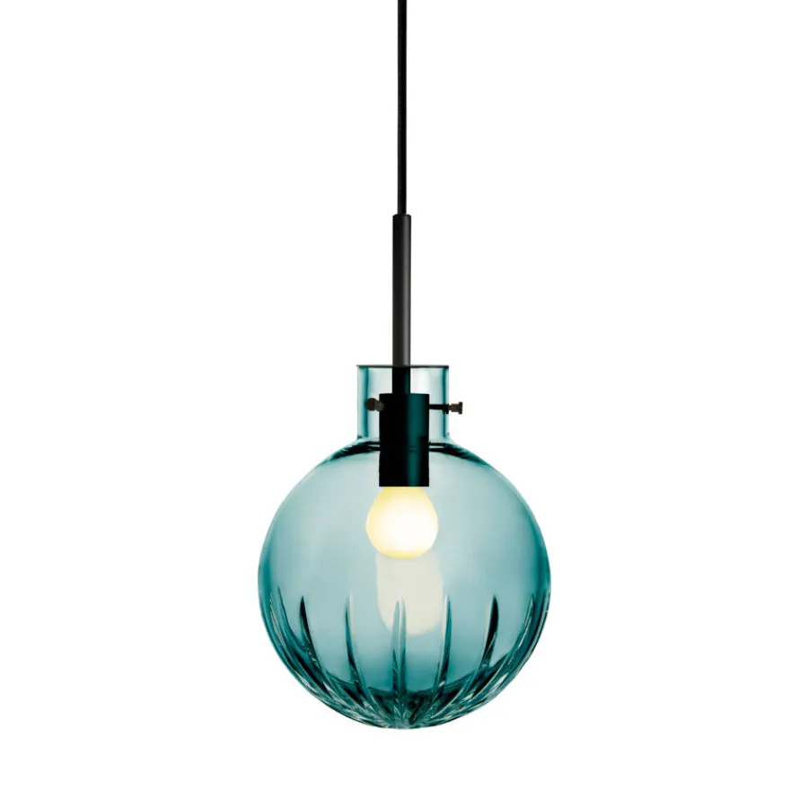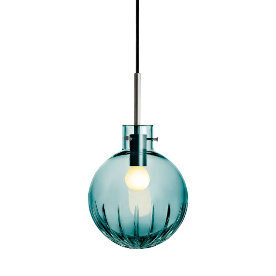 Munnblåst og håndslipt ved Hadeland Glassverk, der flere enn syv håndverkere bidrar i prosessen, er dette en lampe som bærer tydelige spor av ekte håndverk. Den blågrønne fargen tilfører interiøret en frisk og harmonisk karakter, som gjør lampen til et naturlig blikkfang.