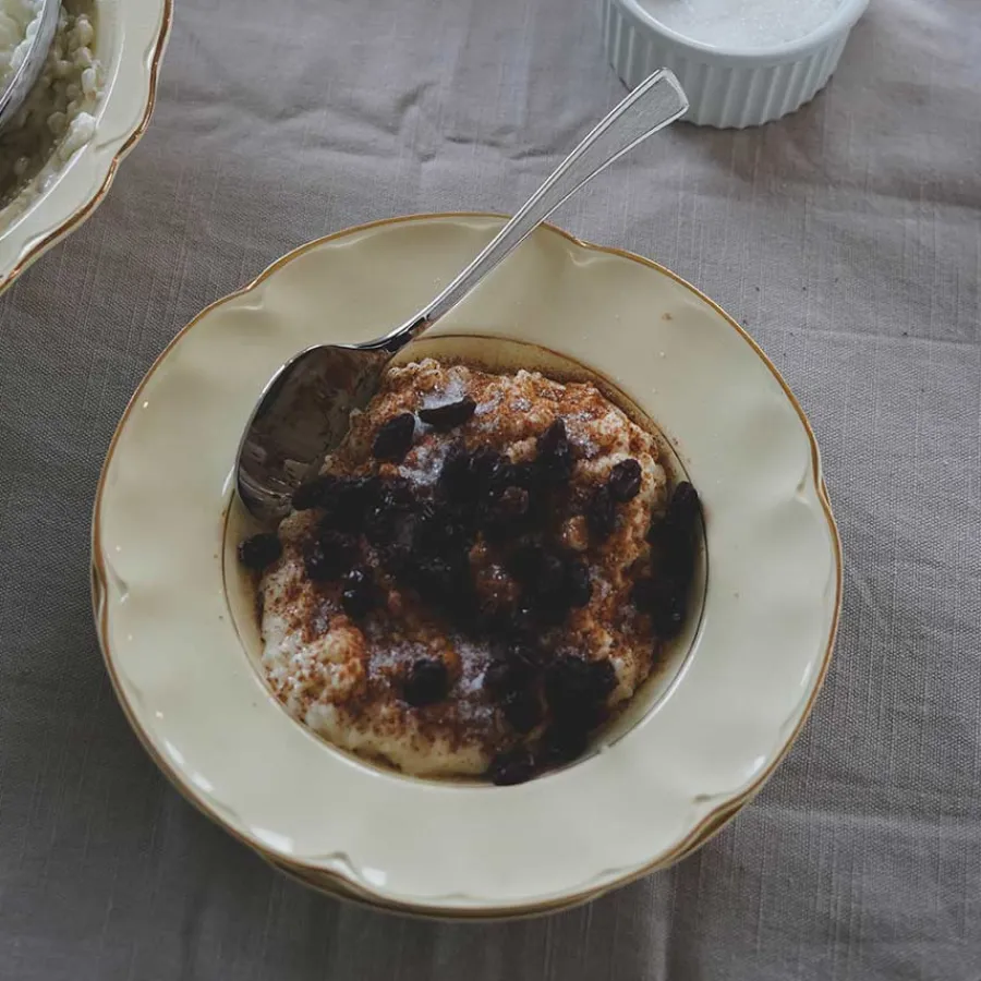 Grøtsett til 4 personer fra Hardanger Bestikk og den vakre serien Ramona, designet av Odd Leikvoll i 1982. Det praktiske settet kommer med en grøtsleiv som rommer mye og slipper grøten lett, en sukkerskje og 4 stk spiseskjeer. Bestikket er laget av 18/10 stål og levers i en flott gaveeske. Tåler oppvaskmaskin.