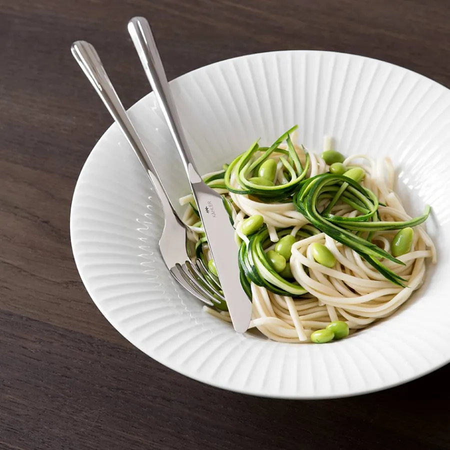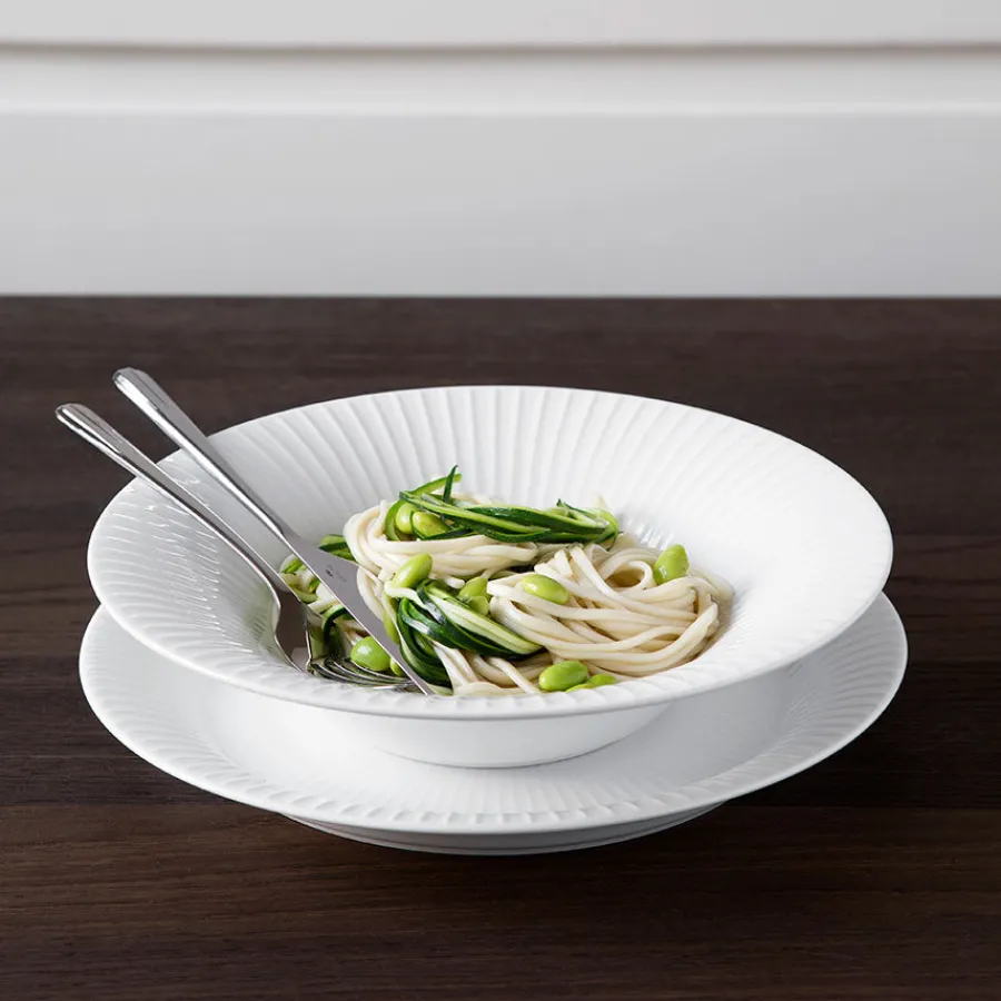 Dyp tallerken fra Kähler. Det stilige Hammershøi serviset har et klassisk utseende med gjenkjennelige riller og kan brukes som hverdagsservise året rundt, og samles for resten av livet. Den dype tallerkenen er perfekt for varm suppe eller frisk salat, og kan også brukes til å servere deilig frukt.