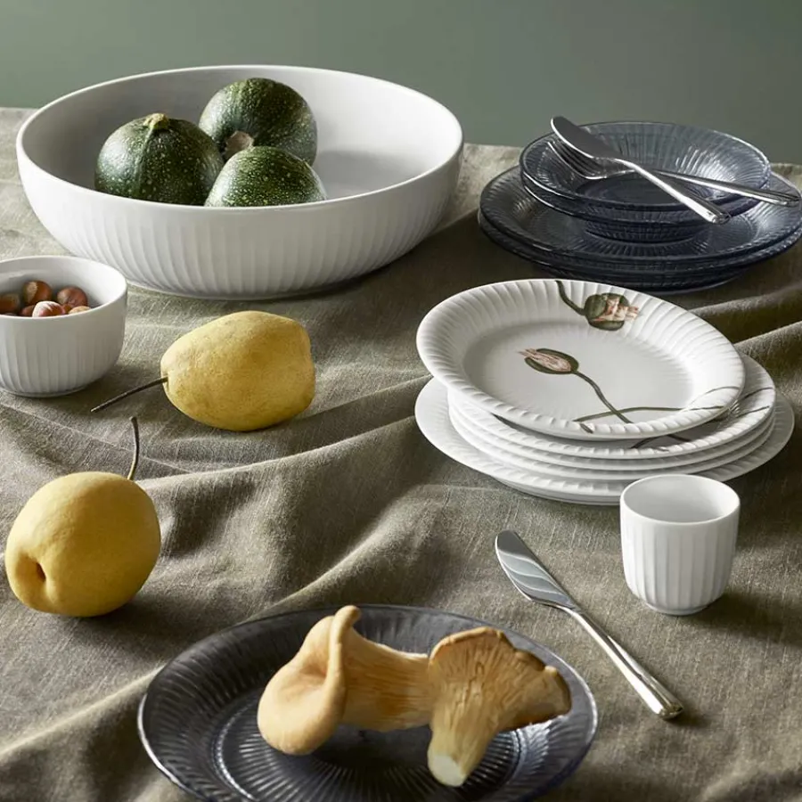 Eggeglass fra Kählers Hammershøi-servise, designet av Hans-Christian Bauer. De sjarmerende eggeglassene supplerer et stilig dekket frokostbord, og kan kombineres med servisedeler i flere forskjellige farger