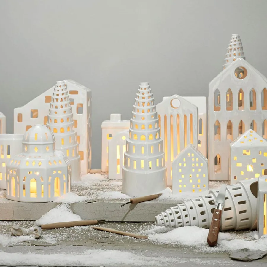 Lyshus utformet som et lite tårn fra Kähler i serien Urbania. De elegante lyshusene fra Urbania er utformet i forskjellige design av kjente bygninger. Det lille tårnet vil lyse opp i stuen når de koselige, mørke vinterkveldene kommer. Lyshuset i størrelsen 11, 5 cm x 8 cm vil med sine mange delikate håndutskårede vinduer skape vakre og fortryllende lyssilhuetter i stuen. Det lille tårnet kan skinne alene, eller sett sammen med flere av lyshusene fra Urbania for en praktfull og koselig stemning.
