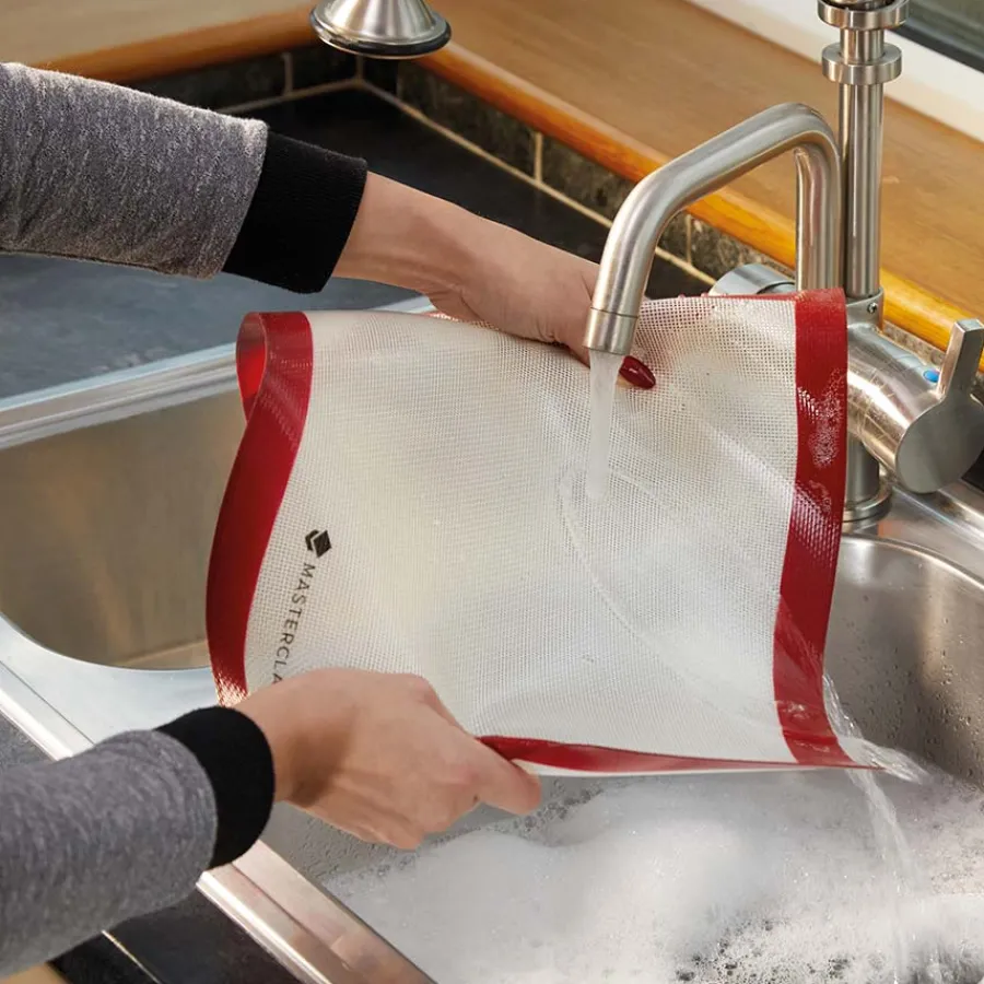 Gjenbrukbart bakepapir med non-stick fra Masterclass. Bakematten kan brukes til steking av alt fra pizza til boller, og er et godt alternativ til engangsbakepapir. Matten er laget av BPA-fri silikon, og kan brukes i både mikrobølgeovn, frys og ovn. Kan rengjøres i oppvaskmaskin i øverste hylle.