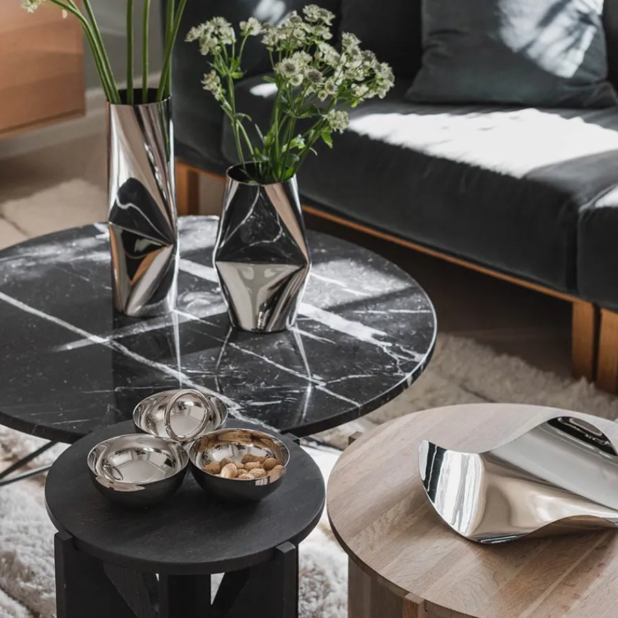 For å bevare glansen anbefales håndvask med mild såpe. Unngå skarpe gjenstander og oppvaskmaskin, da dette kan gi riper. Dette fatet er ikke bare praktisk, men også et dekorativt element som gir borddekkingen en eksklusiv følelse.
