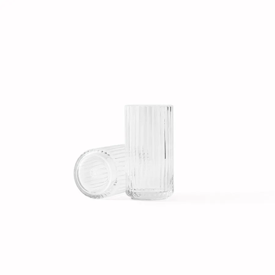 Vase på 15,5 cm fra Lyngby Porcelæn fremstilt i klart glass. Den munnblåste vasen fra Lyngby er en ekte designklassiker med sitt elegante rillemønster og stilrene form. Vasen finnes i flere farger og størrelser som elegant kan kombineres.