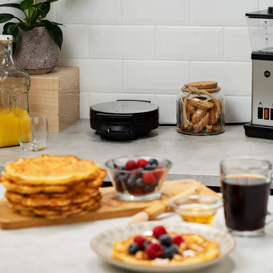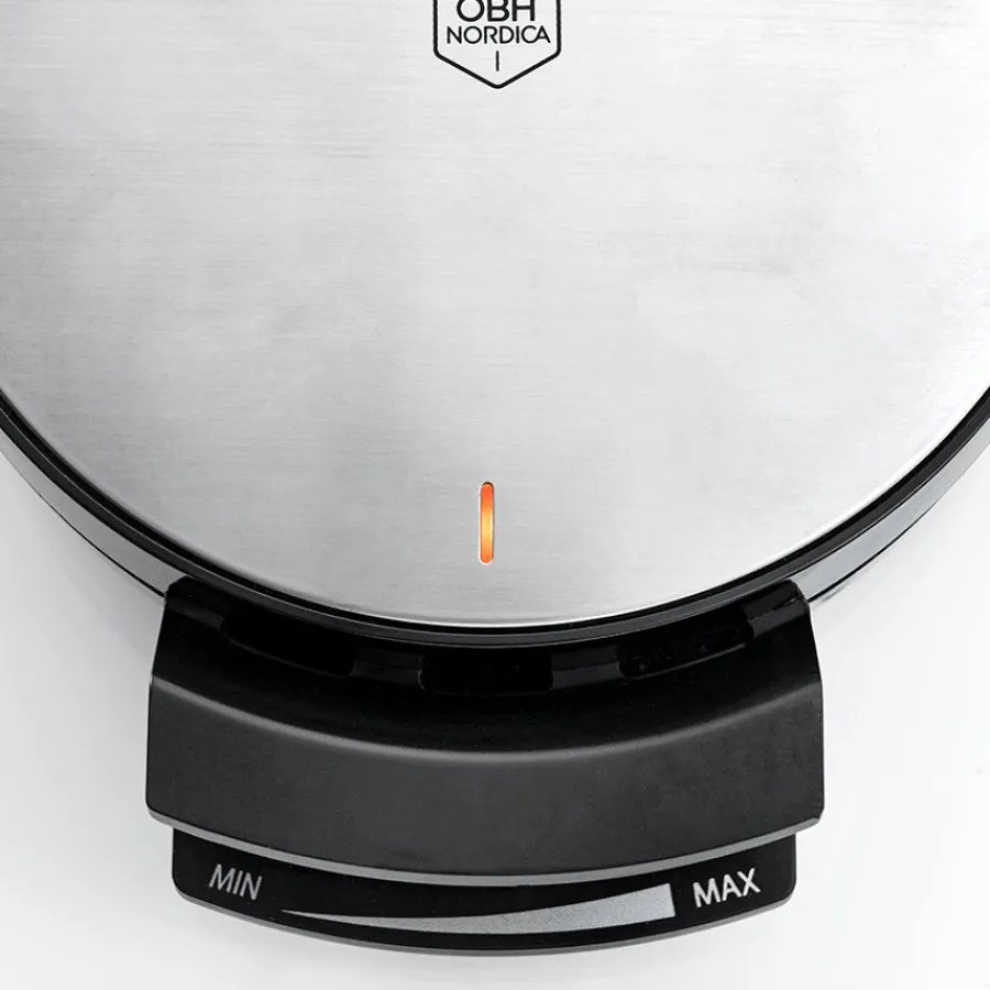 Deluxe vaffeljern fra OBH Nordica. Vaffeljernet er utstyrt med en justerbar temperaturmåler som gjør at du enkelt kan steke vaflene akkurat så sprø og gylne som du selv ønsker. Innsiden er belagt med non-stick belegg som sikrer en effektiv rengjøring.