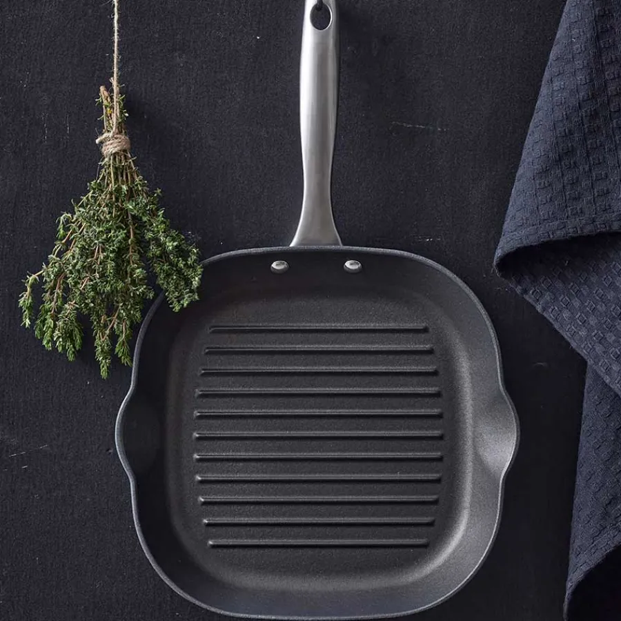 Grillpanne på 28 cm fremstilt i lettvekts støpejern fra Pillivuyt og serien Garonne. Grillpannen er laget av robust og lettvekts støpejern som gir en god og jevn varmefordeling, og belagt med PFOA-fritt Whitford Xylan + non-stick belegg som minsker behovet for bruk av fett ved tilbereding av råvarer. Rillene i grillpannen gir de karakteristiske grillrillene på kjøttet og fisken, og pannen kan benyttes på alle koketopper, inkludert ovn på opptil 220 grader. Håndvask anbefales.