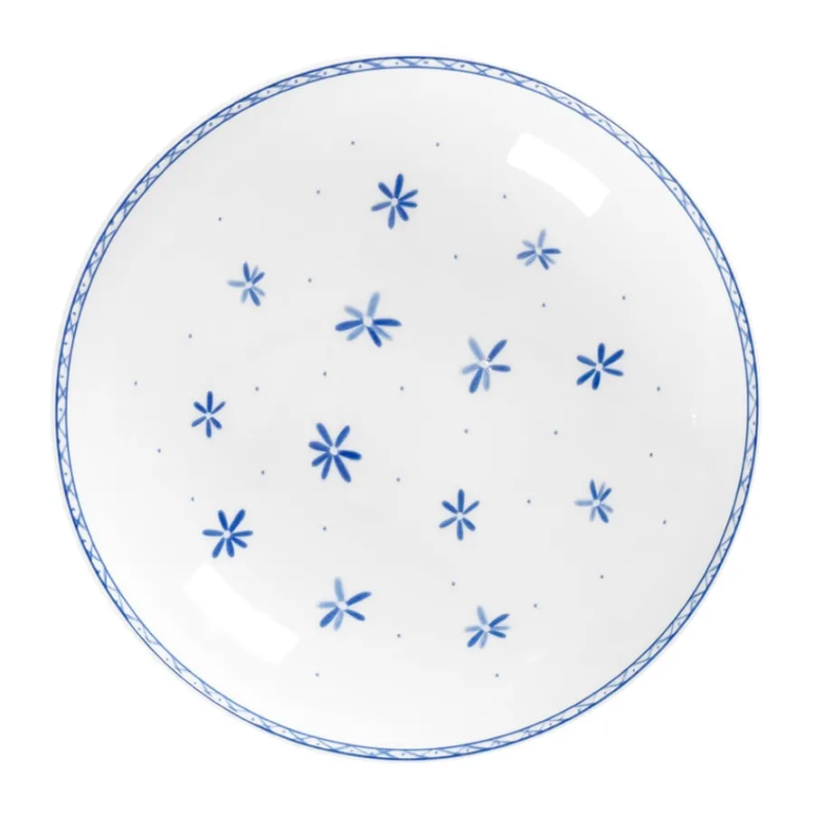 Dyp tallerken på 25 cm fra serien Bluebird Flower, designet av Maud Gjeruldsen Bugge. Serien produseres av Porsgrunds Porselænsfabrik, og ble lansert i 2012. Tallerkenen har en nydelig og delikat dekor bestående av blomster. Kan rengjøres i oppvaskmaskinen og kan brukes i mikrobølgeovn.