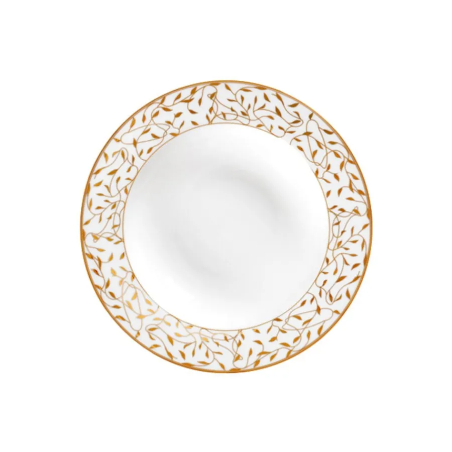 Dyp tallerken på 23 cm fra den flotte serien Cecilie Gull, fra Porsgrunds Porselænsfabrik. Nydelig dyp tallerken med kant, dekorert med løv og grener i gull. Tallerkenen er produsert i benporselen, noe som gjør tallerkenen mer kremhvitt og gjennomskinnelig, og serviset passer derfor som finservise. Serien Cecilie Gull kan enkelt brukes sammen med serien Nathalie Gull, og du kan sette ditt personlige preg på borddekkingen. Håndvask anbefales for å bevare dekoren i Gull.