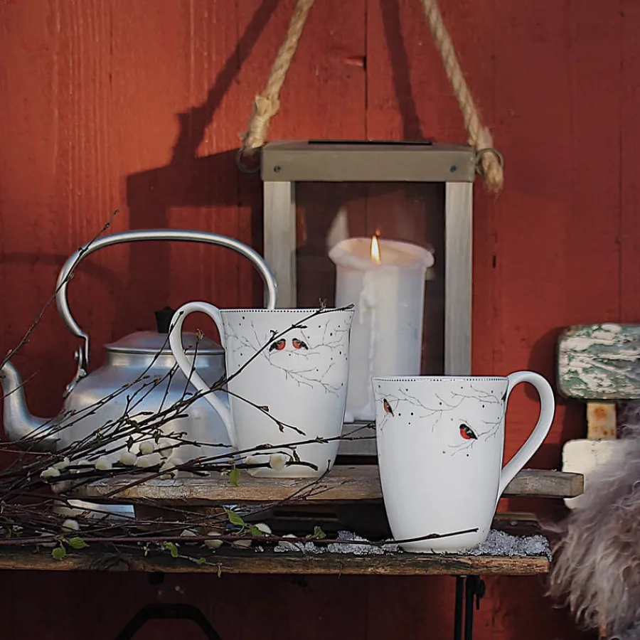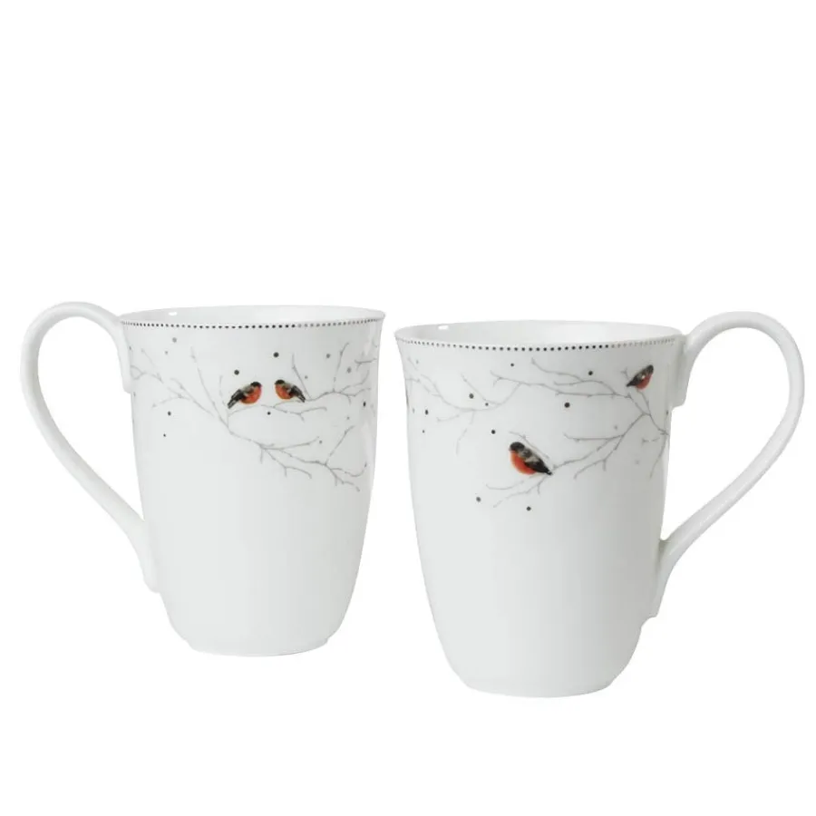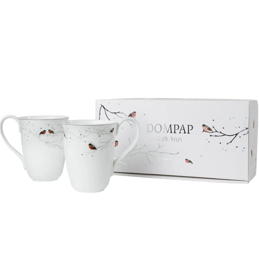 Vakre krus i pakke på 2 stk fra vinterserviset Dompap og Porsgrunds Porselænsfabrik. Det lune serviset er inspirert av den nordiske vinteren og viser den rødbrystede fuglen Dompap på en rimfrostet gren. Krusene rommer 44 cl, perfekt til en kopp med varm sjokolade.