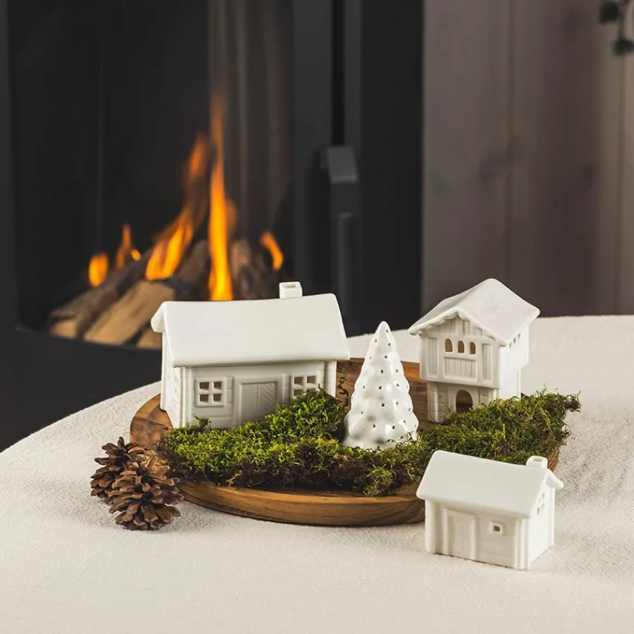Telysholder fra Porsgrunds Porselænsfabrik formet som et vakkert juletre. Juletreet har nøye utskårne hull som skaper et vakkert spill av lys når du tenner et telys inni. Lyset flikrer gjennom hullene og skaper en beroligende atmosfære som umiddelbart bringer deg inn i den mest sjarmerende tiden på året. Telysholderen er 11 cm høyt og 6 cm i diameter. LED-telys medfølger.