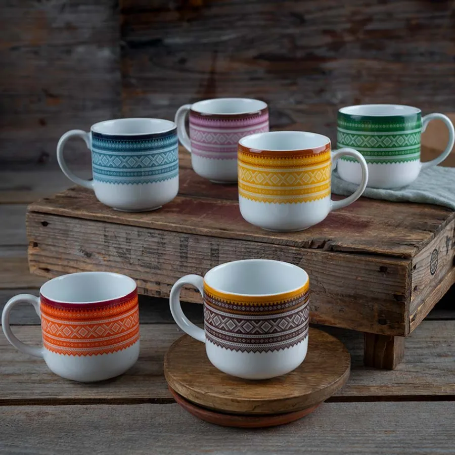 En pakke med 6 stk flerfarget krus fra Marius og Porsgrunds Porselænsfabrik. Det tradisjonsrike Mariusmønsteret har siden 1953 prydet både klesplagg og serviser, og igjennom tiden fått sin plass som et norsk designikon. I denne pakken får du 6 stk krus i ulike farger som sammen skaper en vakker fargepalett på bordet, perfekt til både hjemmet og hytta.