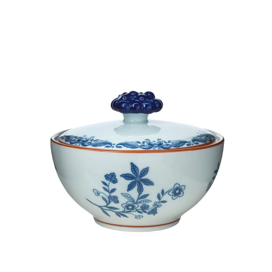Denne skålen med lokk fra Rörstrands Ostindia-serie er ideell for oppbevaring og servering av småretter. Den rommer 0,35 liter og har et klassisk blått mønster som gir et sofistikert preg på bordet. Lokket gjør den perfekt for oppbevaring av mat i kjøleskapet eller til servering av dip og dressinger. Laget av høykvalitets porselen som tåler både mikrobølgeovn og oppvaskmaskin.