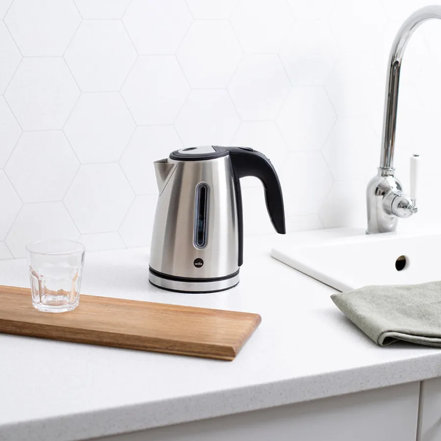 WKW-5S vannkoker på 1 liter fra Wilfa. Vannkokeren er fremstilt i stål og kommer i en liten og nett størrelse, perfekt for en plassbesparende oppbevaring på kjøkkenet. Med en automatisk avslåing sikrer du beskyttelse mot tørrkoking, og det ergonomiske håndtaket gir et behagelig grep ved helling.