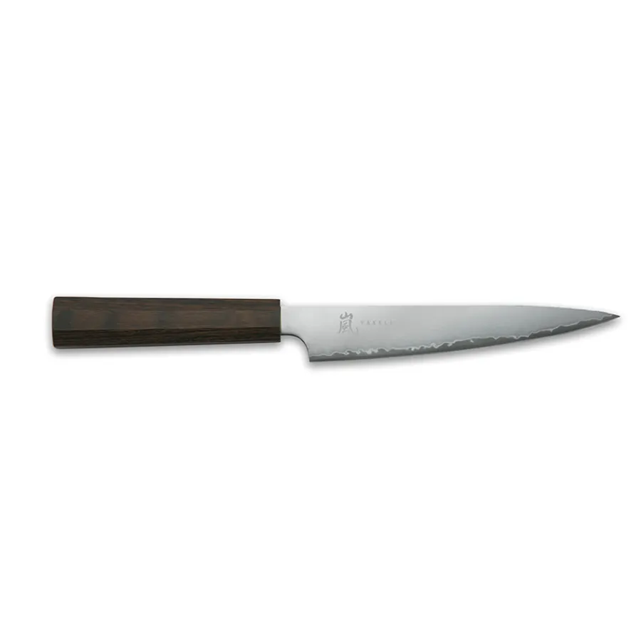 Universalkniven fra Yaxell Hana på 15 cm er en perfekt balanse mellom kraft og kontroll. Når kokkekniven føles for stor og skrellekniven for liten, trår denne kniven til som det ideelle verktøyet til daglige kjøkkenoppgaver. Bruk den til å kutte løk, hakke urter, rense chili eller dele frukt og mindre grønnsaker – raskt, nøyaktig og med stil.