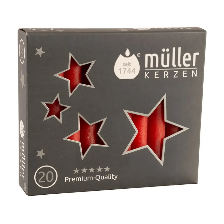Stearinlys til juletre. Lysene er fremstilt i en klassisk julerød farge og kommer i en pakke på 20 stk.