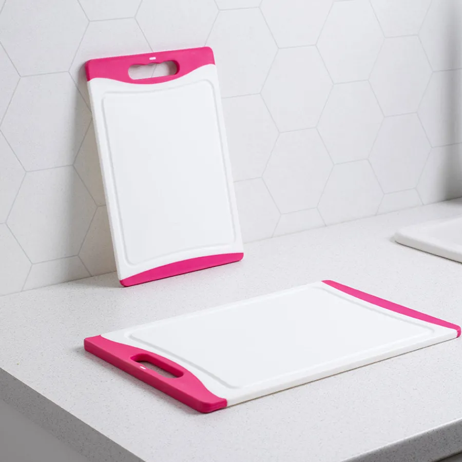 Skjærefjølsett med rosa detaljer i 2 pk fra Christiania 1739 og serien Kitchenline. Fjølene er utført med en antibakteriell overflate og silikonkanter som sørger for at de ligger stødig på benken.