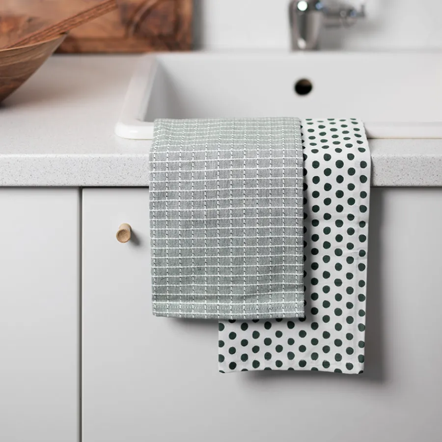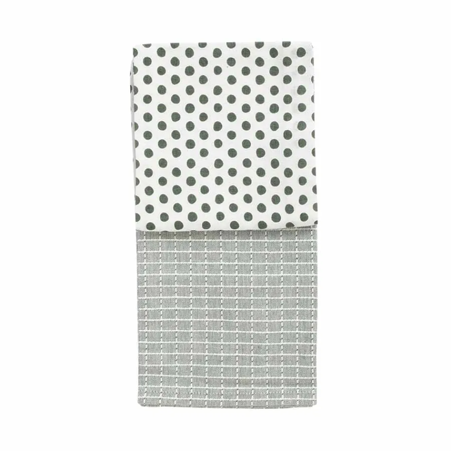 CHRISTIANIA 1739 Kjøkkenhåndkle Grønn/Mønster Bomull 50X70cm 2pk