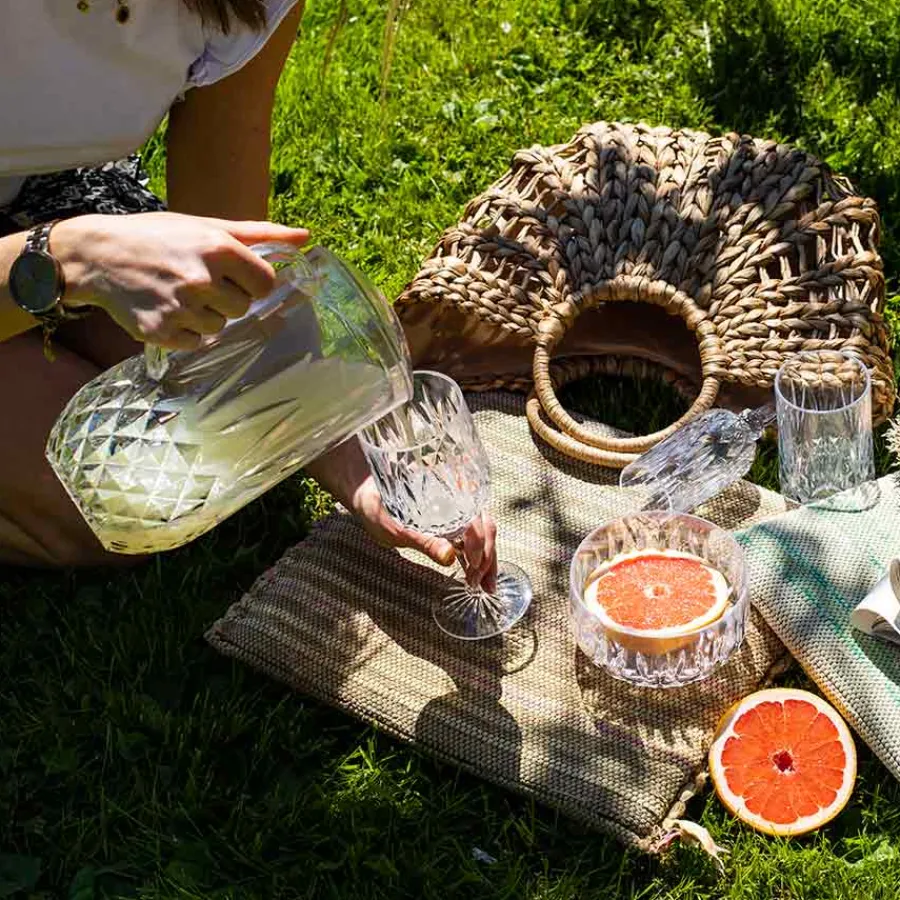 Champagneglass i akryl fra Christiania 1739. Sommerserien Klar er produsert i akryl som er lett av vekt og egner seg spesielt godt til utendørs bruk, perfekt for en liten vinkveld på balkongen eller i hagen. I samme serie finnes også vannglass, skål og vannmugge.