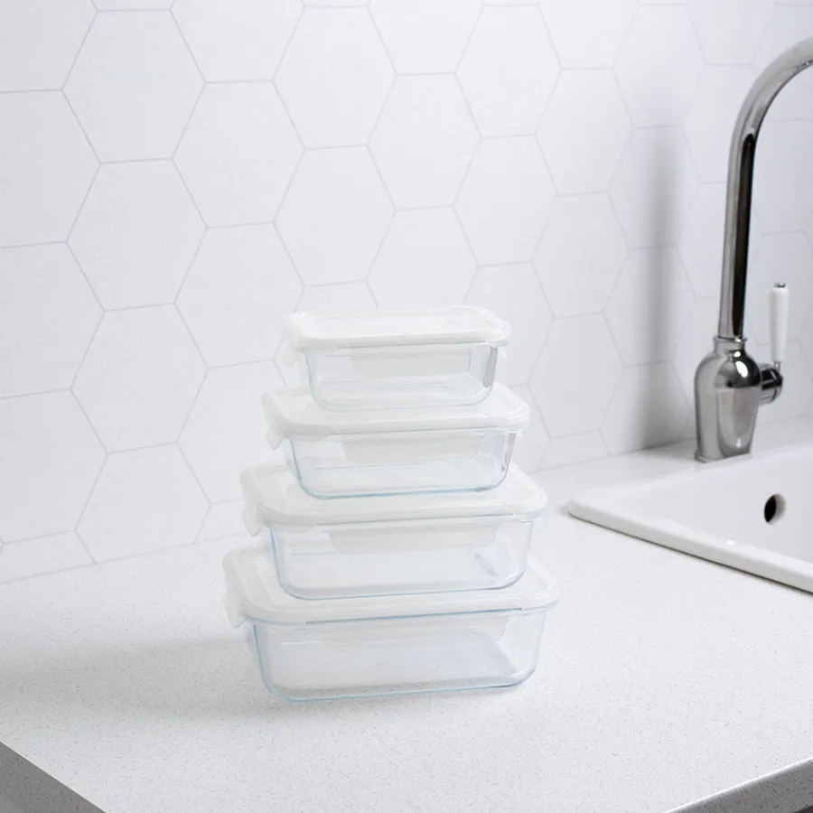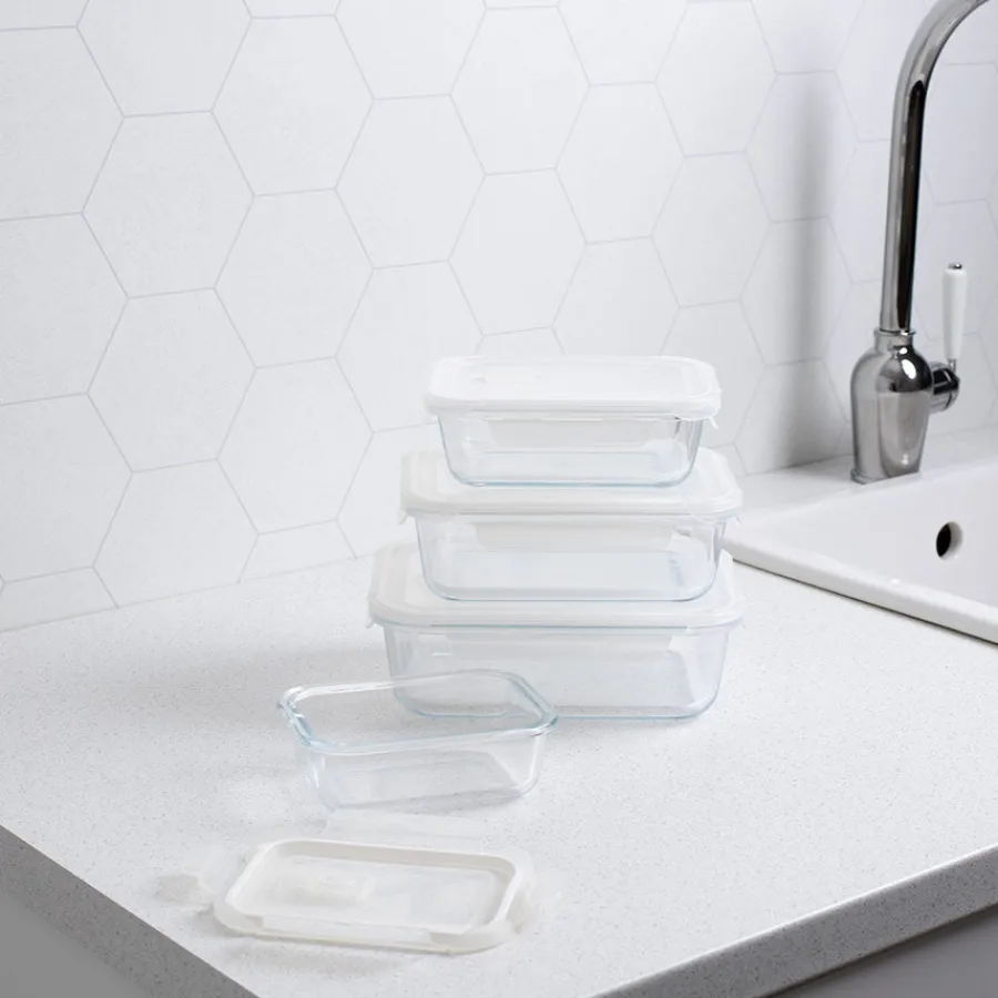 Glassbeholderen tåler oppvaskmaskin, ovn, mikrobølgeovn og fryser. Plastlokket kan rengjøres i oppvaskmaskin og tåler fryser, men må ikke brukes i ovn eller mikrobølgeovn.