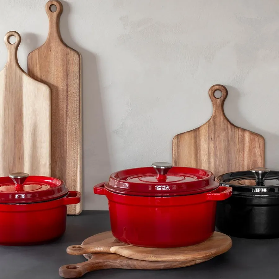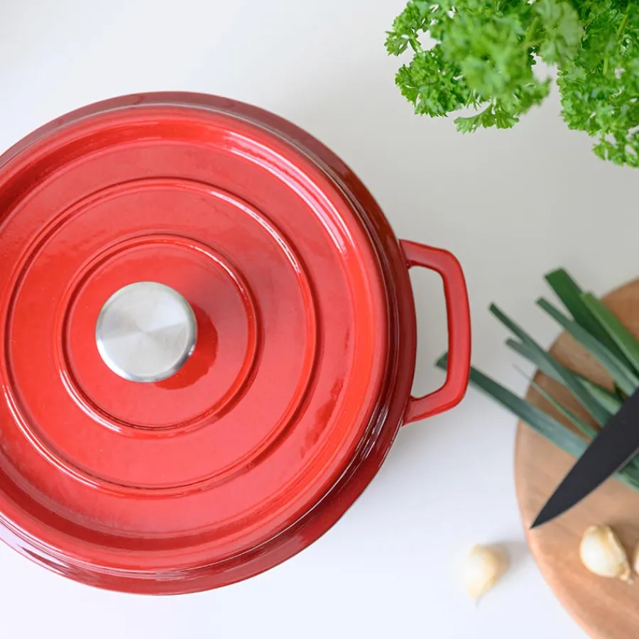 Rød støpejernsgryte på 3,4 liter fra Christiania 1739. Støpejern anses som et av de beste materialene for matlaging på grunn av dens evne til å fordele varmen jevnt og holde godt på varmen. Gryten er ideell til tilbereding av alt fra lagtidskokte gryteretter til grytebrød, og kommer i et stilfullt uttrykk som gjør seg flott til servering av maten. Tåler alle koketopper, inkludert induksjon. Håndvask anbefales. Unngå metallbørste og skurebørste da dette kan skade emaljen.