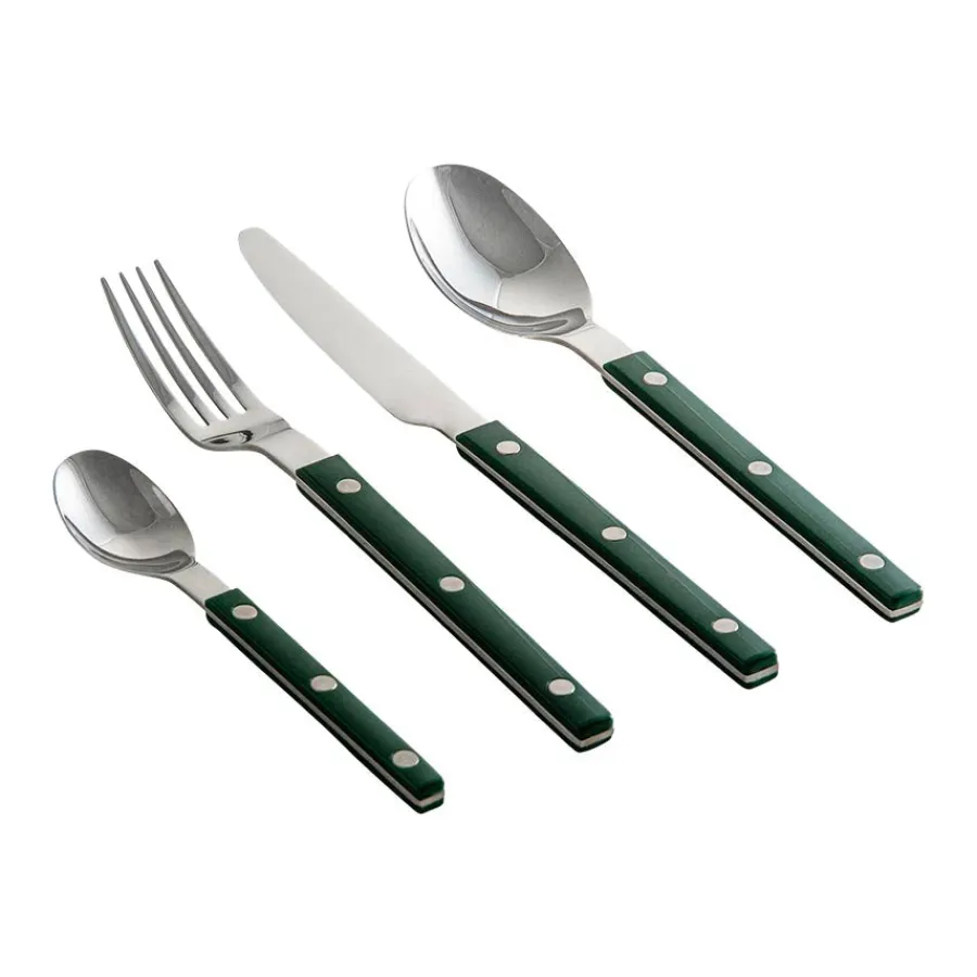 Theo bestikksett i grønn gir borddekkingen en frisk og stilfull vri. Den dype grønne tonen tilfører varme og dybde til måltidene, og passer perfekt sammen med både rustikk og moderne servisedesign.
