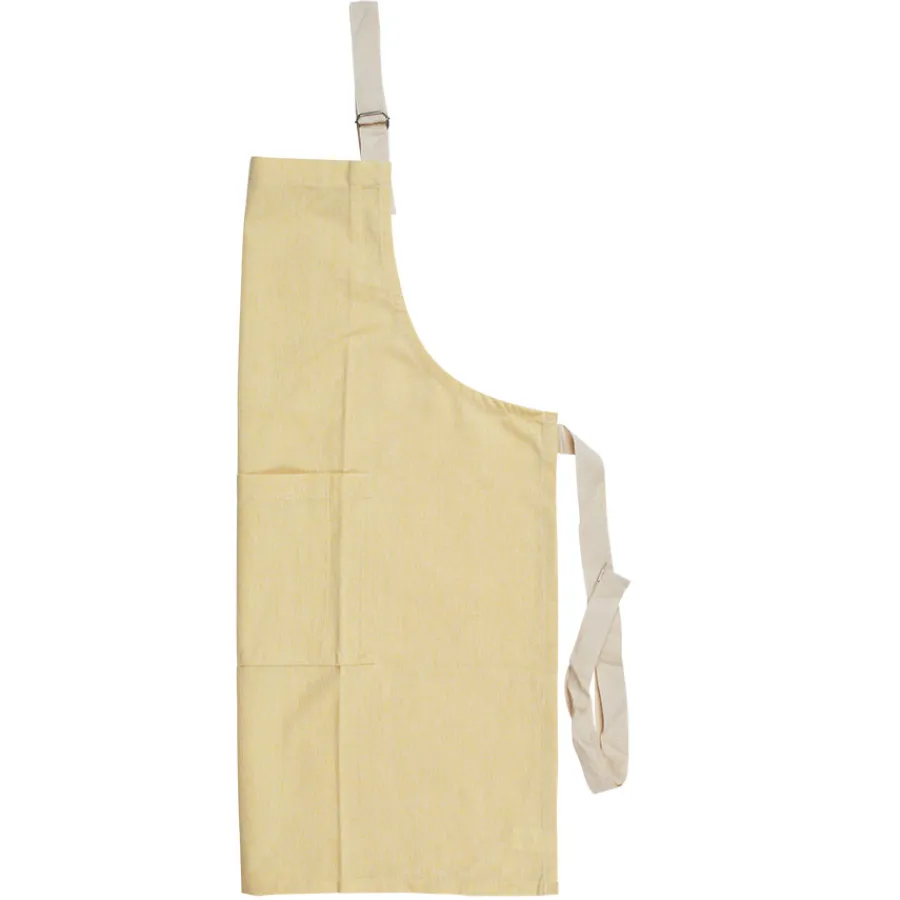 Forkle fra Christiania Glasmagasin som gir deg en lys og glad følelse på kjøkkenet. Med sin sterke gulfarge og rene linjer er det både praktisk og pent. Det måler 70 x 80 cm og dekker godt over klærne dine, slik at du trygt kan fokusere på matlagingen.
