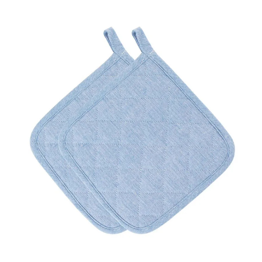 Gi kjøkkenet ditt et friskt pust med gryteklutene fra Christiania Glasmagasin. Disse slitesterke og varmebestandige gryteklutene er laget i 100 % bomull og kommer i en lyseblå farge som lyser opp matlagingsøyeblikkene dine. Perfekt til både baking, matlaging og servering – og gir trygghet når du håndterer varme former og kjeler.