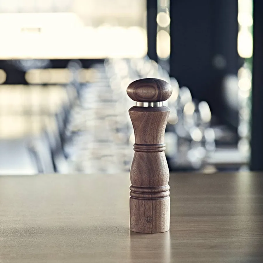 Krydderkvern passende til salt eller pepper fra Crushgrind og serien Paris. Kombinasjonen av rustfritt stål og valnøtt skaper et elegant preg til både spisebordet og kjøkkenbenken. Kvernen er utstyrt med Crushgrind sin patenterte mekanisme og måler 22 cm. Salt eller pepper fylles enkelt på ved å ta av den øverste delen på kvernen.