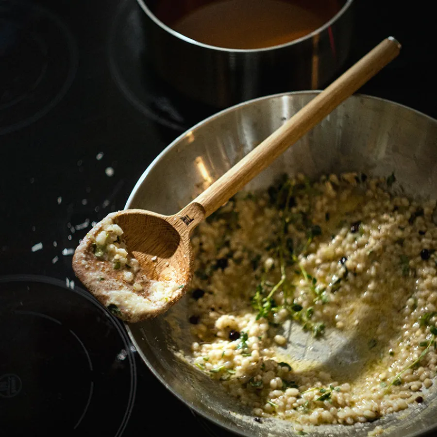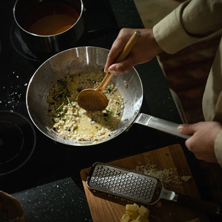 Fiskars Norden Gryteskje i eik er et funksjonelt og estetisk vakkert kjøkkenredskap, inspirert av nordisk natur og tradisjoner. Laget av solid, lys eik, kombinerer den holdbarhet med et naturlig og unikt utseende, takket være den naturlige variasjonen i treverket. Perfekt til både matlaging og servering, med et balansert design som gir komfort og kontroll under bruk.Skjeen er trygg å bruke i non-stick kokekar, og det bærekraftige treverket er hentet fra ansvarlig forvaltede skoger. Som en del av Norden-serien, reflekterer den enkelhet og moderne estetikk, samtidig som den er 100 % resirkulerbar. Håndvask anbefales for å bevare treets naturlige skjønnhet og holdbarhet.