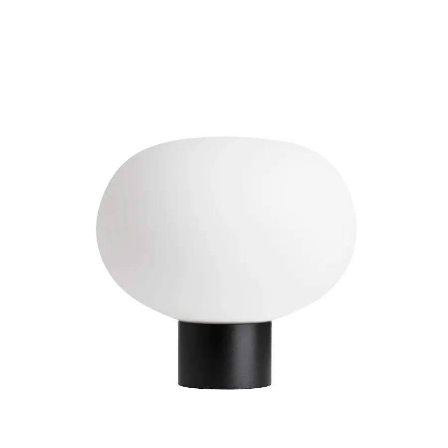 Den munnblåste glasskuppelen i matt hvitt gir et mykt lys og et elegant, dempet uttrykk. Den matte overflaten tilfører en subtil luksusfølelse, samtidig som den gjør lampen enkel å kombinere med ulike interiørstiler. Kuppelen hviler på en bordsokkel i messing eller sort, og den høye håndverkskvaliteten sikrer at hver lampe er unik.
