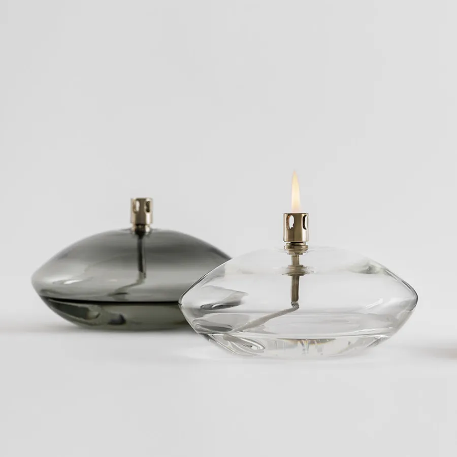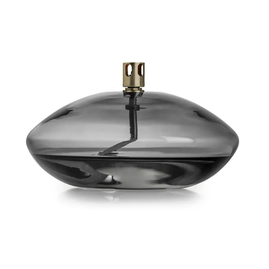 Oljelampe fra Hadeland Glassverk i en moderne røkgrå farge, Den myke flammen fra lampen skaper en magisk glød som hjelper deg med å slappe av etter en travel dag, eller setter scenen for en romantisk kveld med din kjære. Enten det er i stuen, på soverommet eller i en utendørs terrasse, gir Aurora Oljelampe en subtil og varm belysning som gir en god stemning i hjemmet. Olje kjøpes separat.
