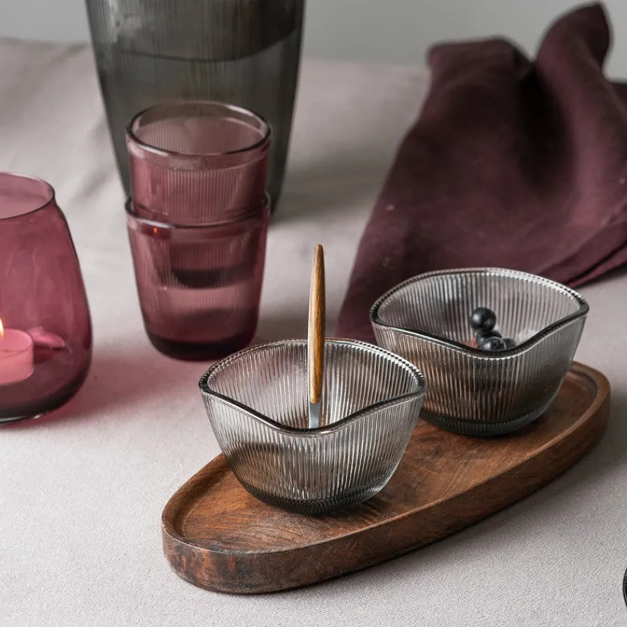 Telysholder i 2pk fra Hadeland glassverk i serien Siri. Serien er en relansering som har blitt basert på Willy Johanssons design fra 1953. Telysholderen i fargen røkgrå kommer med dekorative riller som skaper et stilrent preg i hjemmet. Telysholderen kommer også i blankt glass, og kan kombineres med farger røkgrå for et stilfullt uttrykk.