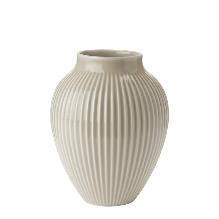 Stilrik vase i fargen sand. Knabstrup Keramik følger en lang og stolt historie som produsent av vakker keramikk, vasens opprinnelige design ble først introdusert på slutten av 1940-tallet. Med en klassisk og sofistikert utforming gjør vasen seg vakker med og uten blomster, og beigetonen matcher ulike innredninger og stiler.