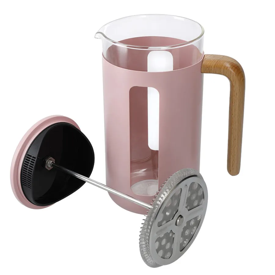 Glassbegeret tåler oppvaskmaskin, holderen i rustfritt stål vaskes for hånd.