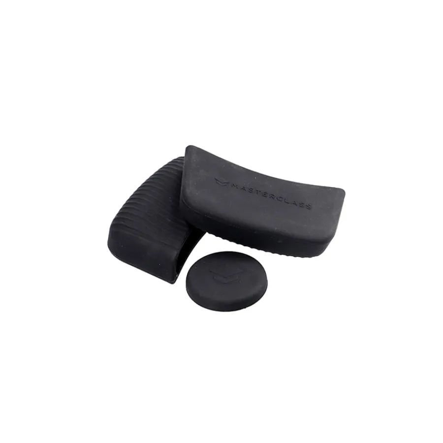 Sett med grytehåndtak og knott til lokk fra Masterclass. Delene er fremstilt i silikon som gir et behagelig grep og beskytter hendene mot varme når du skal løfte gryten. Kan rengjøres i oppvaskmaskin. Delene er designet for å passe til de støpte aluminiumsgrytene fra Masterclass.