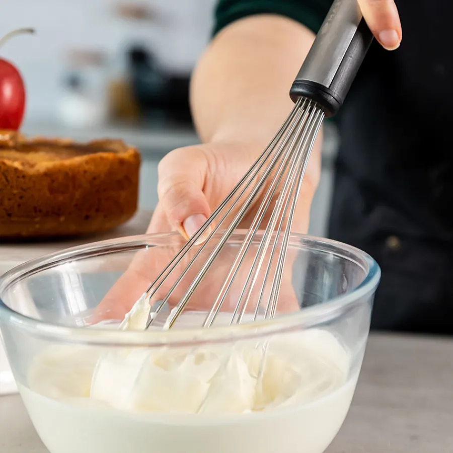 Ballongvisp i rustfritt stål på 30 cm med et ergonomisk håndtak fra Masterclass. Gjør matlagingen og bakingen enklere med den ekstremt sterke vispen – med ståltråder som er motstandsdyktige mot flekker, lukt og rust, og vispen er egnet for skåler av alle størrelser.