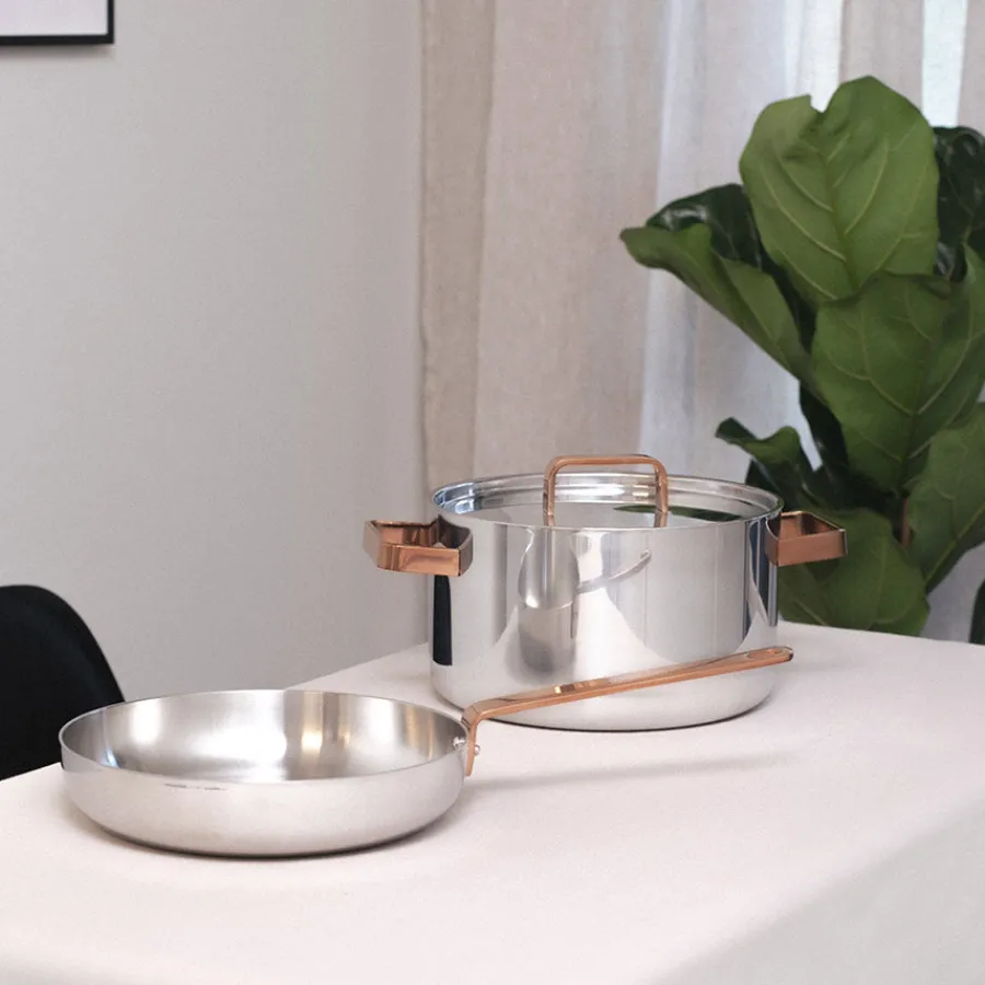 Boen gryte på 6 liter fra Løve. Gryten er laget av 18/8 rustfritt stål og utformet med håndtak i en stilren rosegull farge. 3-lagskontruksjonen sikrer en jevn og optimal varmefordeling, som i kombinasjon med det nordiske stilfulle uttrykket gjør gryten til en favoritt på kjøkkenet. Håndvask anbefales for best bevaring av den blanke overflaten. Tåler alle koketopper inkludert induksjon, og bruk i ovn på opptil 200 grader.