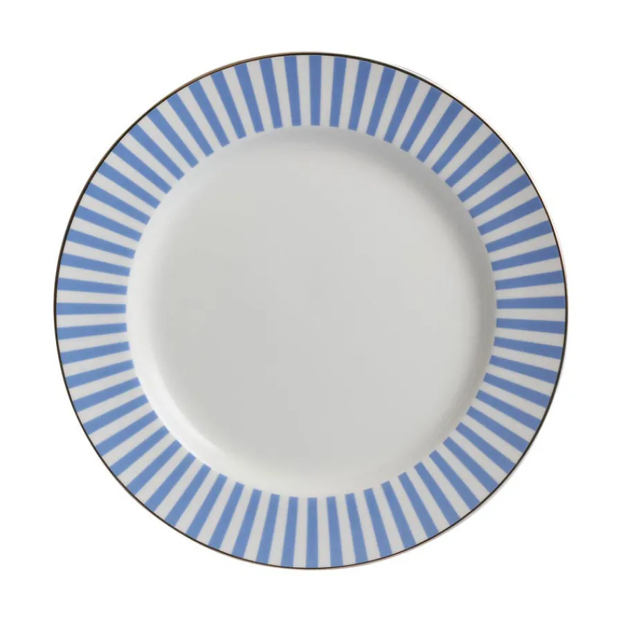 Abby-asjetten i klassisk blå med elegant gullkant gir borddekkingen et friskt, men tidløst preg. Med sin størrelse på 21 cm passer den utmerket til forretter, kaker eller små serveringer. Det stripete mønsteret i kombinasjon med gullkanten gir en balanse mellom lekenhet og eleganse.