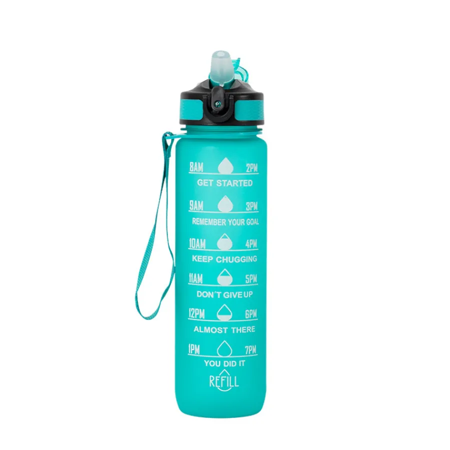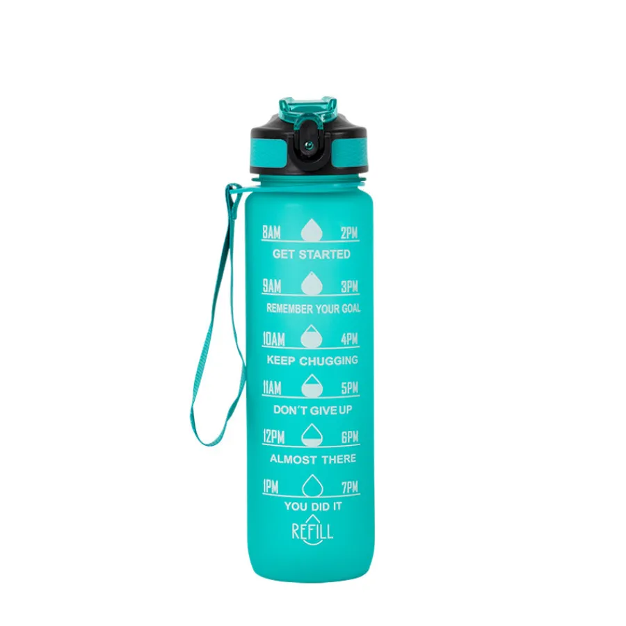 Motivasjonsflaske i grønn fra Nova og serien Dynamic. Flasken rommer 1 liter og kommer med trykk av motiverende måleenheter som minner deg på å drikke vann i løpet av dagen. Utstyrt med en praktisk bærestropp og en behagelig drikketut som enkel vippes ned når flasken skal lukkes. Fremstilt i BPA-fri plast.