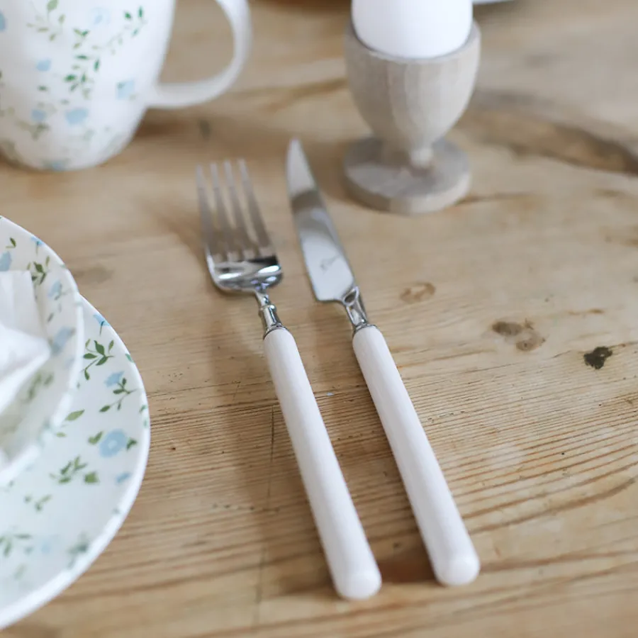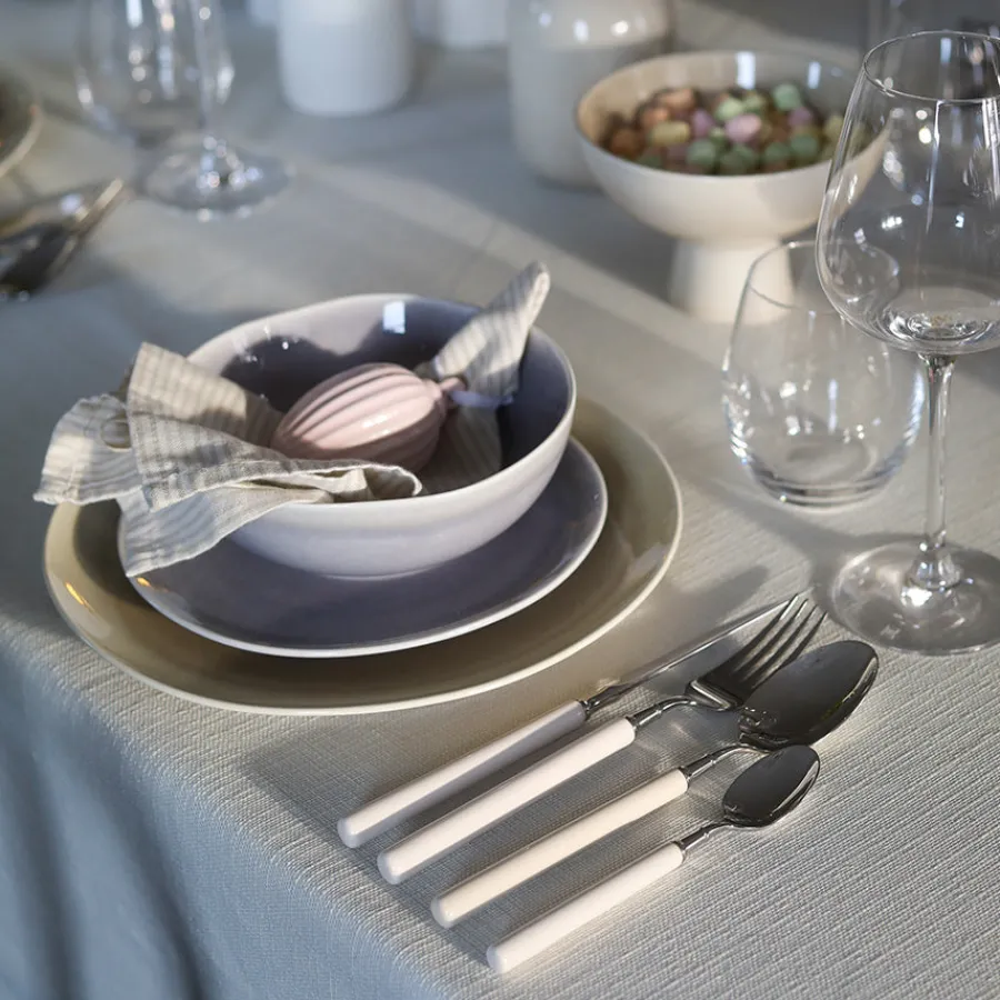 Oppdag kombinasjonen av tidløs design og moderne kvalitet med porselensbestikk fra Porsgrunds Porselænsfabrik. Dette elegante bestikksettet består av kniv, gaffel, spiseskje og teskje – alle laget i solid 18/10 rustfritt stål med elegante håndtak i porselen. Den hvite finishen gir et sofistikert uttrykk som passer like godt til hverdag som til fest.Bestikket er designet med fokus på både funksjon og estetikk. Hver del ligger godt i hånden og tilfører borddekkingen et eksklusivt preg. Settet leveres i en lekker gaveeske, og er dermed også et perfekt gavetips til bryllup, jubileum eller innflytting. Et bestikksett som løfter måltidet – enten det er til frokost, søndagsmiddag eller festmiddag med gjester. Tåler oppvaskmaskin ved riktig bruk og vedlikehold, med sporadisk håndvask anbefales.