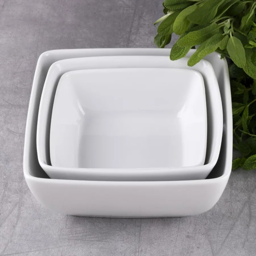 Serveringsboller fra Sense, Porsgrunds Porselænsfabriks mest komplette servise. De tre serveringsbollene rommer 2 liter, 1,3 liter og 0,8 liter og passer perfekt til servering av både tilbehør og hovedrett. Serviset Sense har livstidsgaranti på kantskår og tåler både ovn, mikro, fryser og oppvaskmaskin.