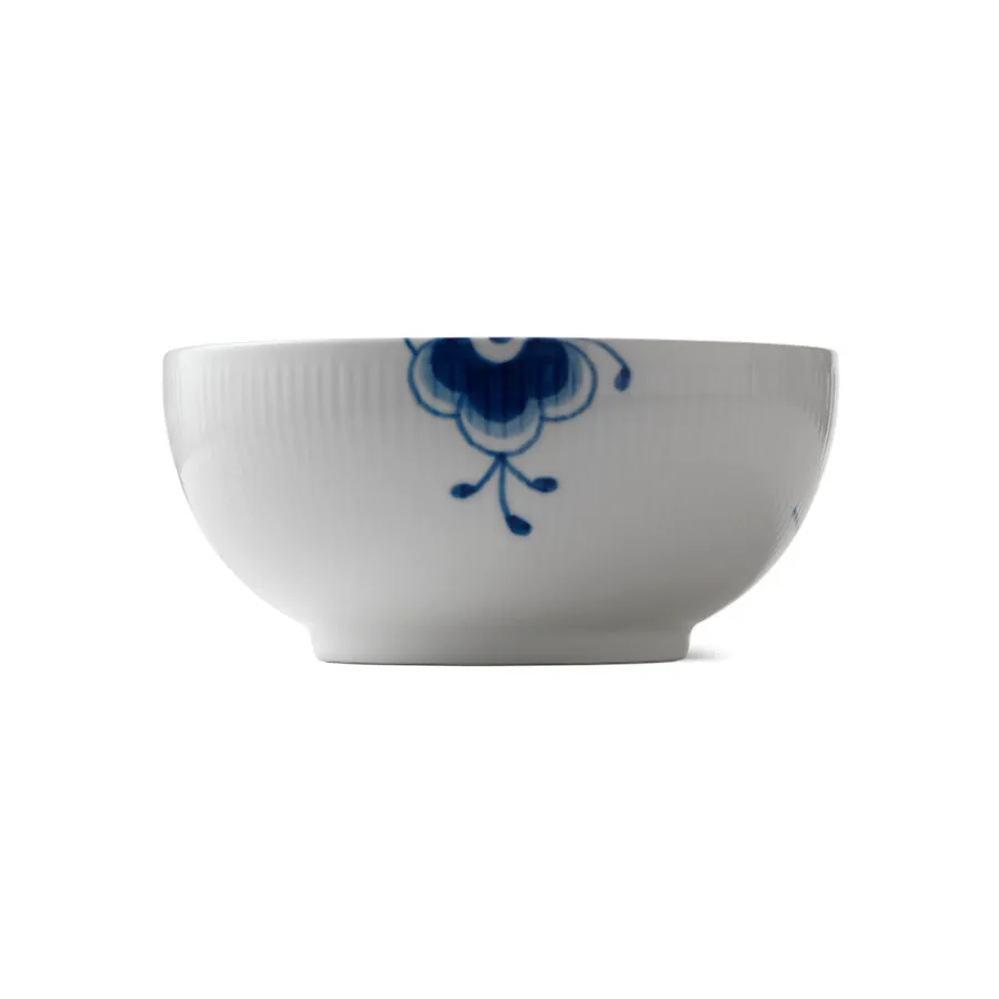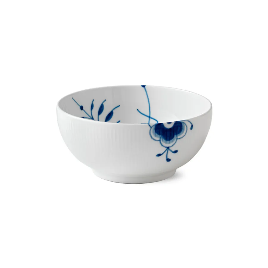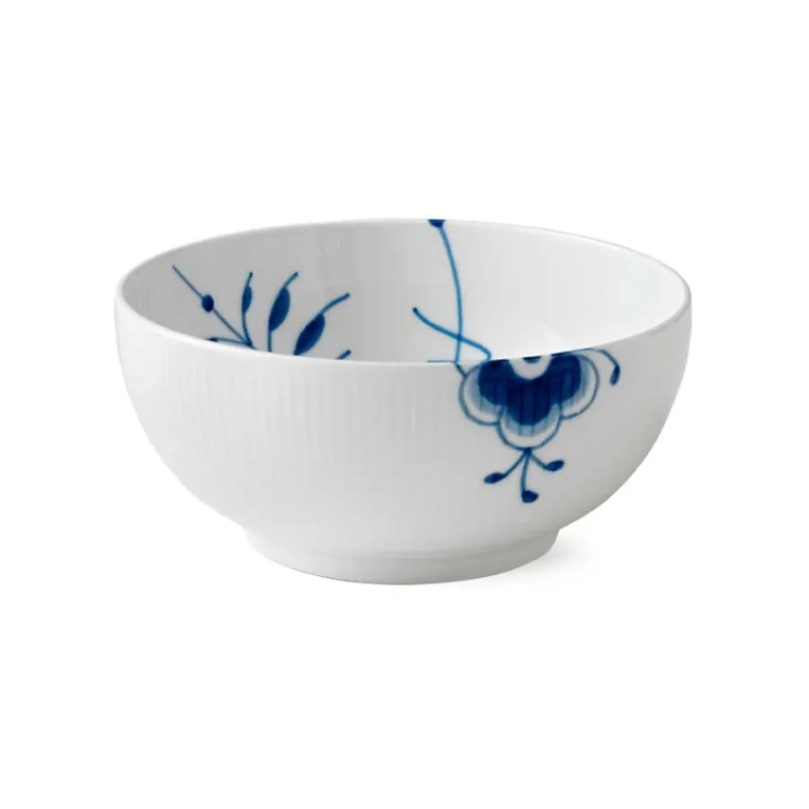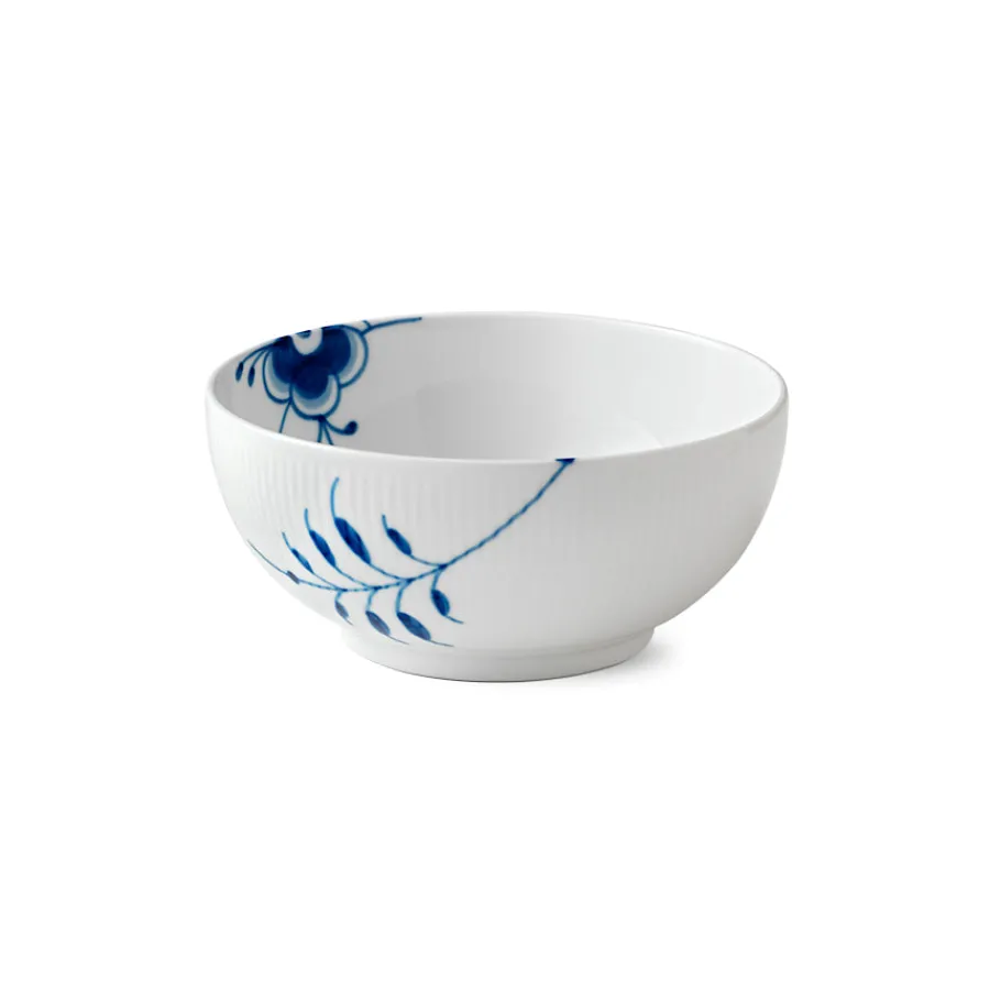 Serveringskål fra det flotte serviset Blå Mega Riflet fra Royal Copenhagen. Det kjente musselmalede mønsteret ble i 2000 tolket på nytt og fikk et modernisert og mer dramatisk utseende, samtidig som det beholdt det gamle gjenkjennelige uttrykket. Hver del i serien er malt for hånd, men tåler likevel oppvaskmaskin og mikrobølgeovn. Alle produkter fra Musselmalet Mega-serviset har 2 års bruddgaranti.